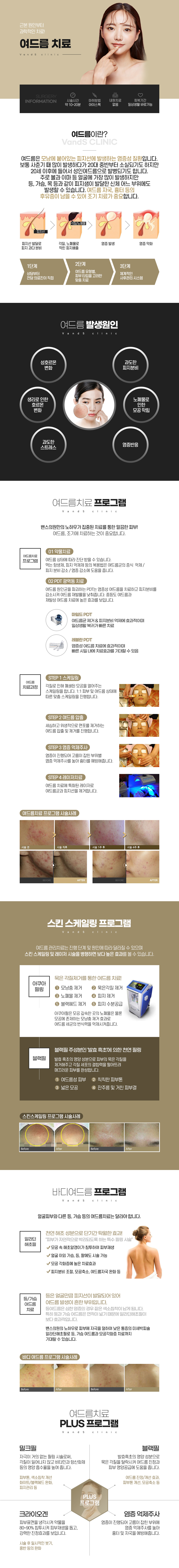 아직 압출 준비가 되어있지 않은 여드름을 억지로 짜게 되면 오히려 덧나고 색소침착이 생길 수 있기 때문에 밴스의원에서는 고객님의 피부 상태를 꼼꼼하게 체크하여 2차 염증이 발생하지 않도록 압출 및 재생 관리를 해주고 있습니다.